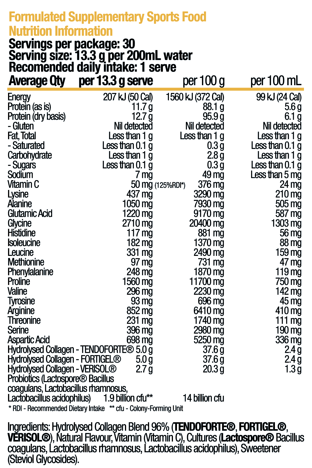 - Add 13.3g (1 level scoop) to 200ml of cold water, your favourite beverage or recipe.